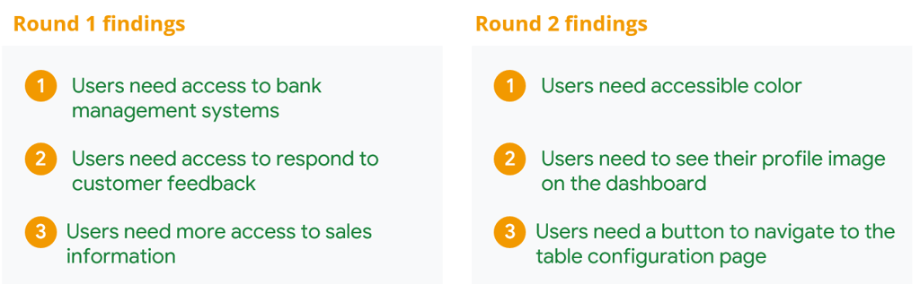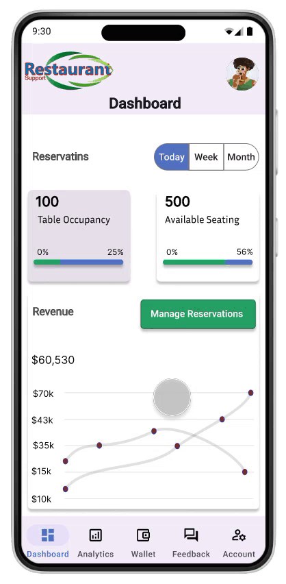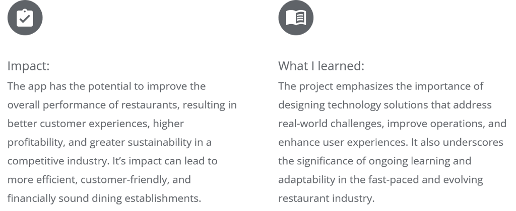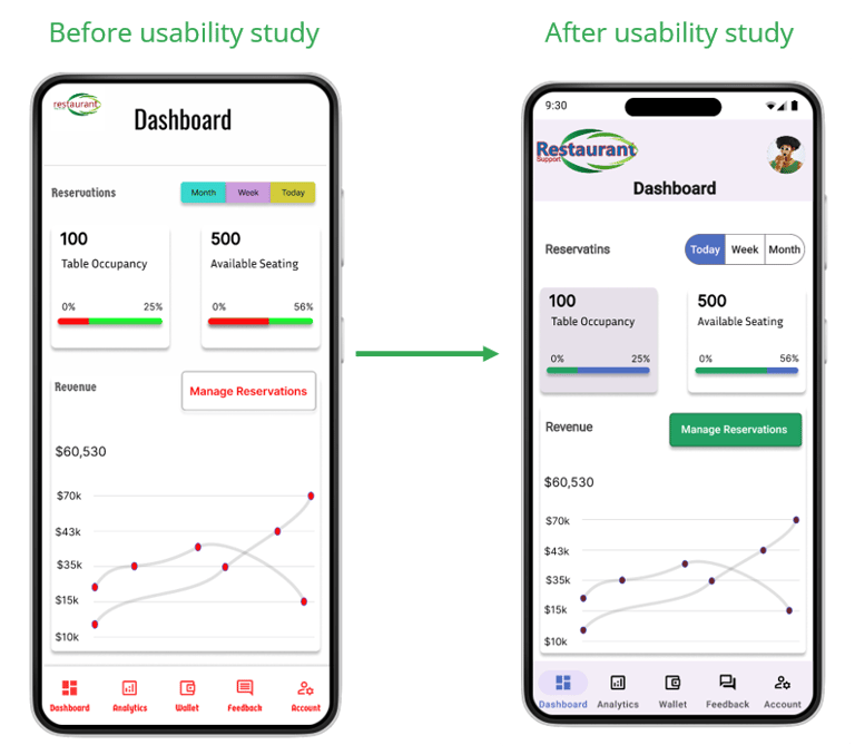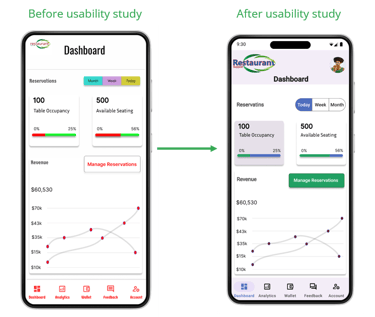The final high-fidelity prototype presented a cleaner user flow for the restaurant support app. It also met the user's needs for managing reservations during busy hours and tracking customer preferences and feedback.