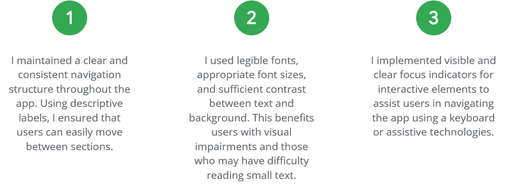 Conducting interviews, paper and digital wireframing, low- and high-fidelity prototyping, conducting usability studies, accounting for accessibility, and iterating on designs.