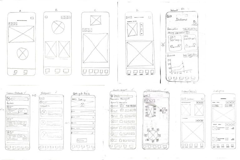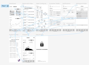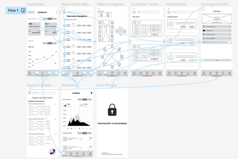 The low-fidelity prototype connected the primary user flow of efficiently managing reservations and orders for easy tracking of customer preferences and feedback during busy hours.